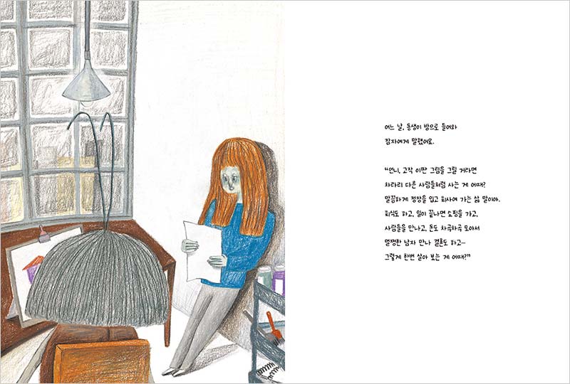 Author Kyungja, who uses conte and charcoal to illuminate the hidden stories around us in detailed colors, has returned with a new story, 『Samsa』. It is a picture book that will linger in readers’ memories long after closing the last page. Set in a dark, small room, featuring a main character alienated from her family and a name that seems familiar, this story draws inspiration from Franz Kafka’s novel, 「Metamorphosis」. Now, the materials that left many readers in refreshing shock are filtered through the unique prism of the author Kyungja and her view of the world, resulting in a new and unique narrative. 『Samsa』 prompts readers to rediscover the things they have lost without even realizing it, motivating them to reflect on themselves and our modern society within the world of Samsa.