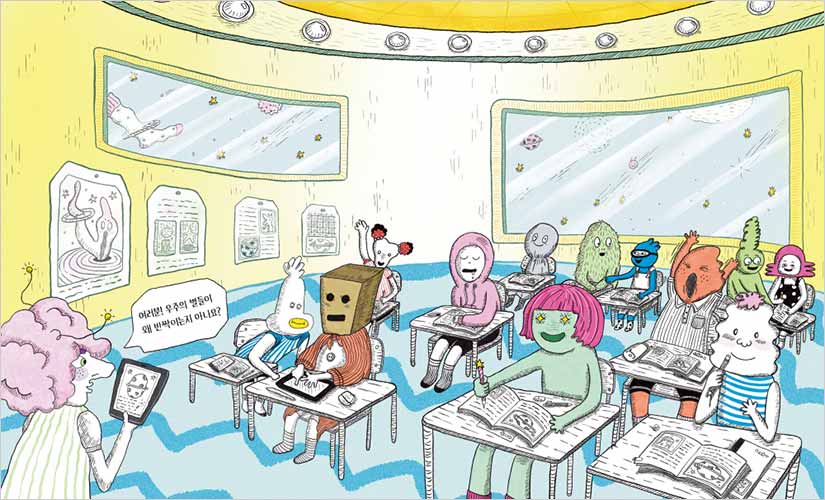 『A Hole In My Sock』 is a cleverly told picture book in comic strip format about a protagonist who one day discovers a hole in his sock and desperately tries to hide it. Set on an alien planet in space, this book is filled with a diverse cast of unique characters. It beautifully illustrates how the world, made up of the many holes that both you and I have, can be incredibly tender and beautiful. If we remember that, despite our flaws, we are each a star in our own right, then just like the protagonist and their friends in this story, we can gently embrace one another—and ourselves— so that not even the smallest speck disappears.