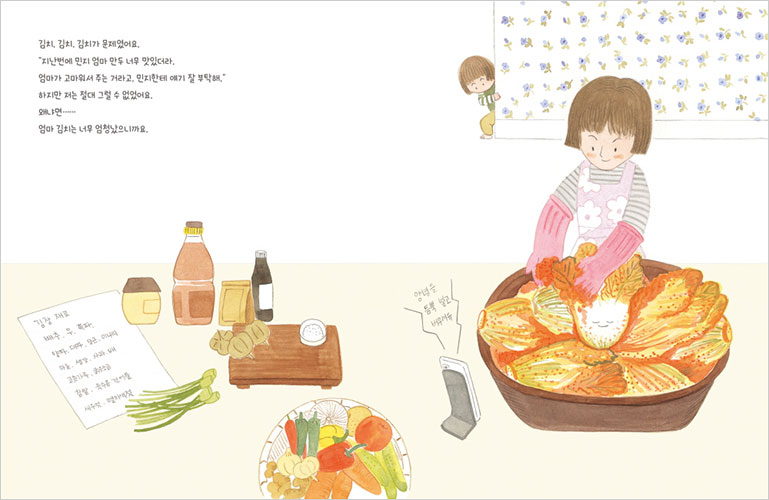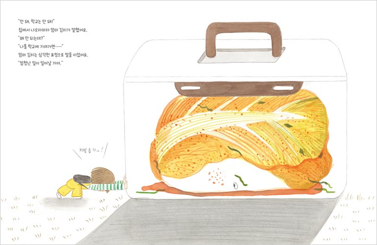 This story, which seems to be about a “timid little kimchi,” is actually the story of “timid little me,” for whom even a small errand felt overwhelming. Through a playful back-and-forth between Ollie and Kimchi, this book encourages readers not to hide their shyness away, but instead to lay it out on the canvas of imagination and examine it with open eyes. Here, our small, quiet feelings aren’t concealed behind quick judgments or hasty gestures but are revealed and appreciated, shining just as they are in a warm, kind gaze. Here, even the tiniest heart can blossom with imagination larger than the universe itself—an “awesome” world, indeed.