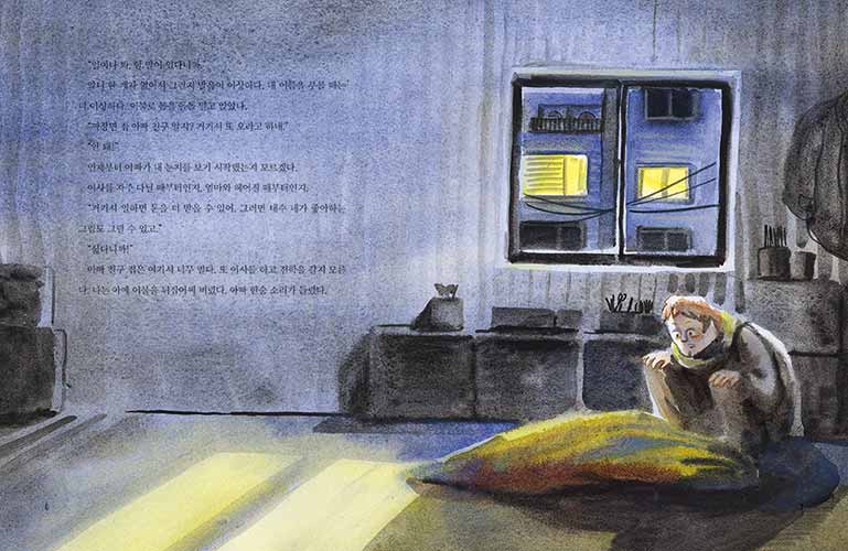 어스름한 새벽부터 부지런히 집을 나서는 아빠의 뒷모습. 늦은 저녁 무렵 집으로 돌아와 창 너머로 잠잠히 바라보던 이웃집 불빛들. 엄마를 만나러 가던 길에 본 스쳐 지나던 사람들과 마을풍경···. 책의 페이지 한 장 한 장을 넘길 때, 우리는 태수가 바라보던 거리 위 스쳐 지나가던 사람들 중 한 사람이 아니라, 겨울의 가장자리에서 한겨울을 감내하는 중인 열세 살짜리 소년이 됩니다.