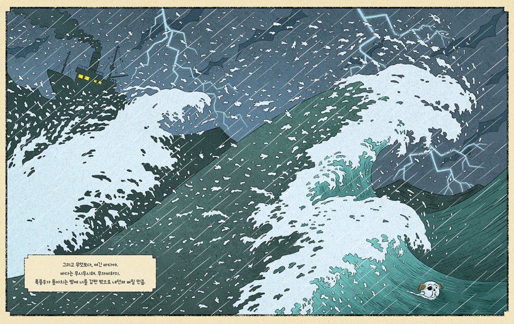 모험을 해 본 이, 혹은 모험 이야기를 즐기는 이라면 혹시 벌써 눈치챘나요? 이 책에서 폴폴 풍겨 오는 거대한 모험의 냄새를요. 시작은 무시무시한 폭풍우가 몰아치는 밤. 거센 바람과 물살에 휩쓸려 바닷속에 빠져 버린 주인공··· 그 순간 나타난 생명의 은인은 바로 신비한 전설의 고래 ‘모비 딕’! 이처럼 『푸피누의 모험』은 누구나 한 번쯤 그려 보았던 환상적인 모험의 세계로 우리를 초대합니다. 푸피누의 여정을 따라 우린 끝없는 대양을 가로지르고, 미지의 왕국에 다다라 새로운 풍경과 인연도 만나게 되지요.