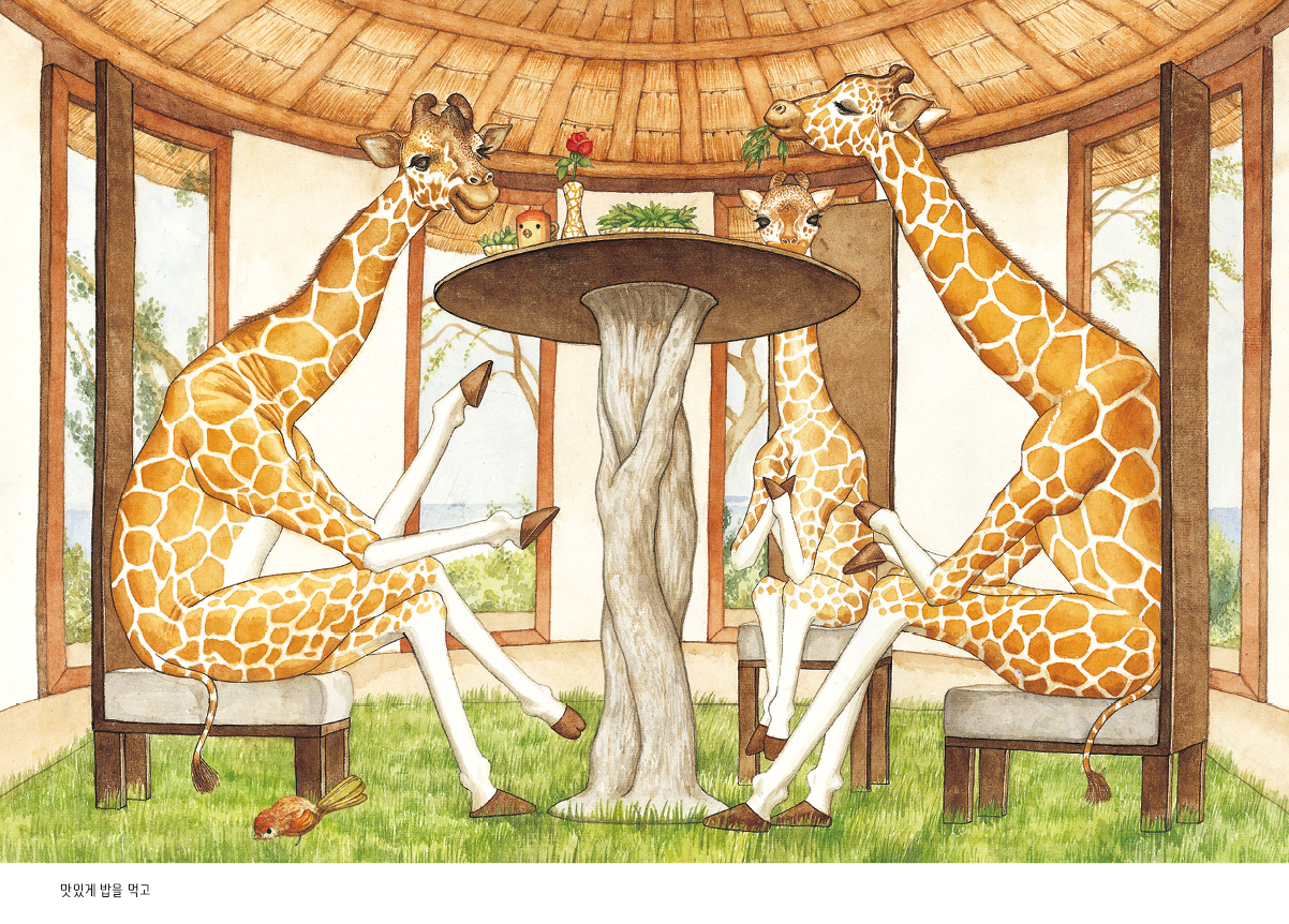 책 속의 동물들을 보고 있노라면 자꾸만 우리 인간의 모습이 겹쳐 보입니다. 인류는 끊임없이 기술을 발전시키고 점점 더 편리한 방식으로 진화해 왔습니다. 버튼 하나로 기계에게 모든 것을 맡기고 아무것도 하지 않아도 되는 도구적 자유를 얻었습니다. 하지만 자본과 효율을 앞세우는 동안 자연은 파괴되고 환경은 오염되었습니다. 인간은 기계처럼 전락했고, 인간이 자연에 던진 부메랑은 극심한 기후 변화와 바이러스 창궐 등으로 인간에게 다시 돌아왔습니다. 최첨단 동물원에 갇힌 동물들처럼 우리도 최첨단 기계들을 갖춘 각자의 집에 갇힌 채 문밖으로 나오지 못하는 상황에 맞닥뜨렸습니다. 생활은 편리해 보이지만 반복되는 일상과 무기력으로 근원적인 자유를 잃어버렸고, 통유리 뒤에서만 머무르며 가까이 있는 그리운 사람들조차 만날 수 없는 신세가 되었습니다. 이 책의 동물들이 인간화되었듯, 인간은 기계화되었습니다. 이 책의 동물들이 야생성을 잃었듯, 우리는 자의든 타의든 인간성을 잃어 가고 있습니다. 어쩌면 지구의 다음 멸종 위기 종은 인간이 될지도 모릅니다.